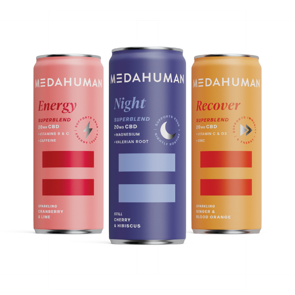 Ginger and blood orange flavoured sparkling botanical drink with vitamin C and D3, turmeric, zinc, piperine and CBD.